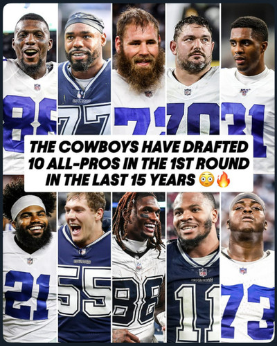 Over the last 15 drafts (we won’t count 2025 because players haven’t played yet), the Cowboys have drafted 10 players in the first round who have become All-Pros. For those doing the math, that’s a 67% All-Pro hit rate. That’s insane. To wrap your mind around just how incredibly high that is, the average All-Pro hit rate of all the other 31 teams in the NFL during that period is just three.